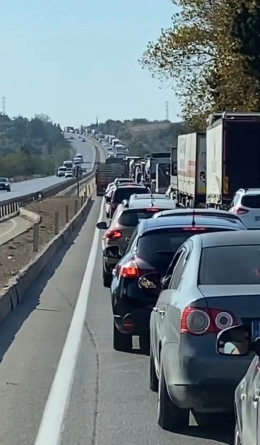 Bursa'da devrilen tır yolu kapattı, kilometrelerce kuyruk oluştu