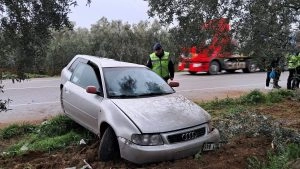 Bursa'da kontrolden çıkan otomobil, zeytinliğe uçtu