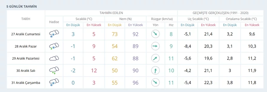 Pazar ve pazartesi günleri hava parçalı bulutlu olsa da gece sıcaklıklarının -1 dereceye kadar düşmesi bekleniyor.