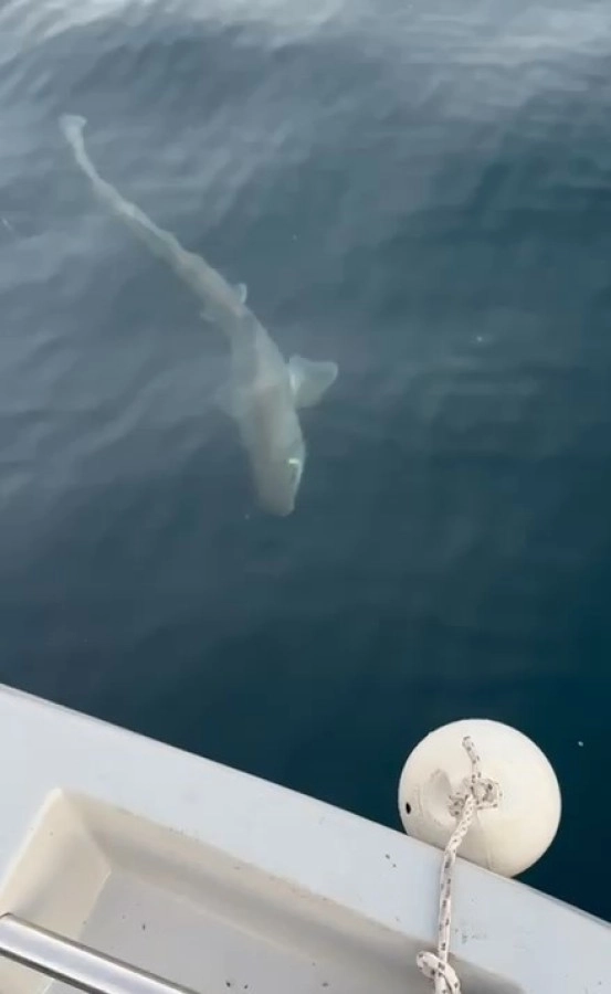 Balıkçılar, köpek balığını görüntüledikten bir süre sonra yeniden denize bıraktı.