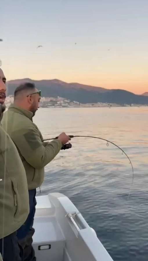 Gemlik Körfezi'nde denize açılan balıkçılar, oltalarına takılan canlının köpek balığı olduğunu fark etti.