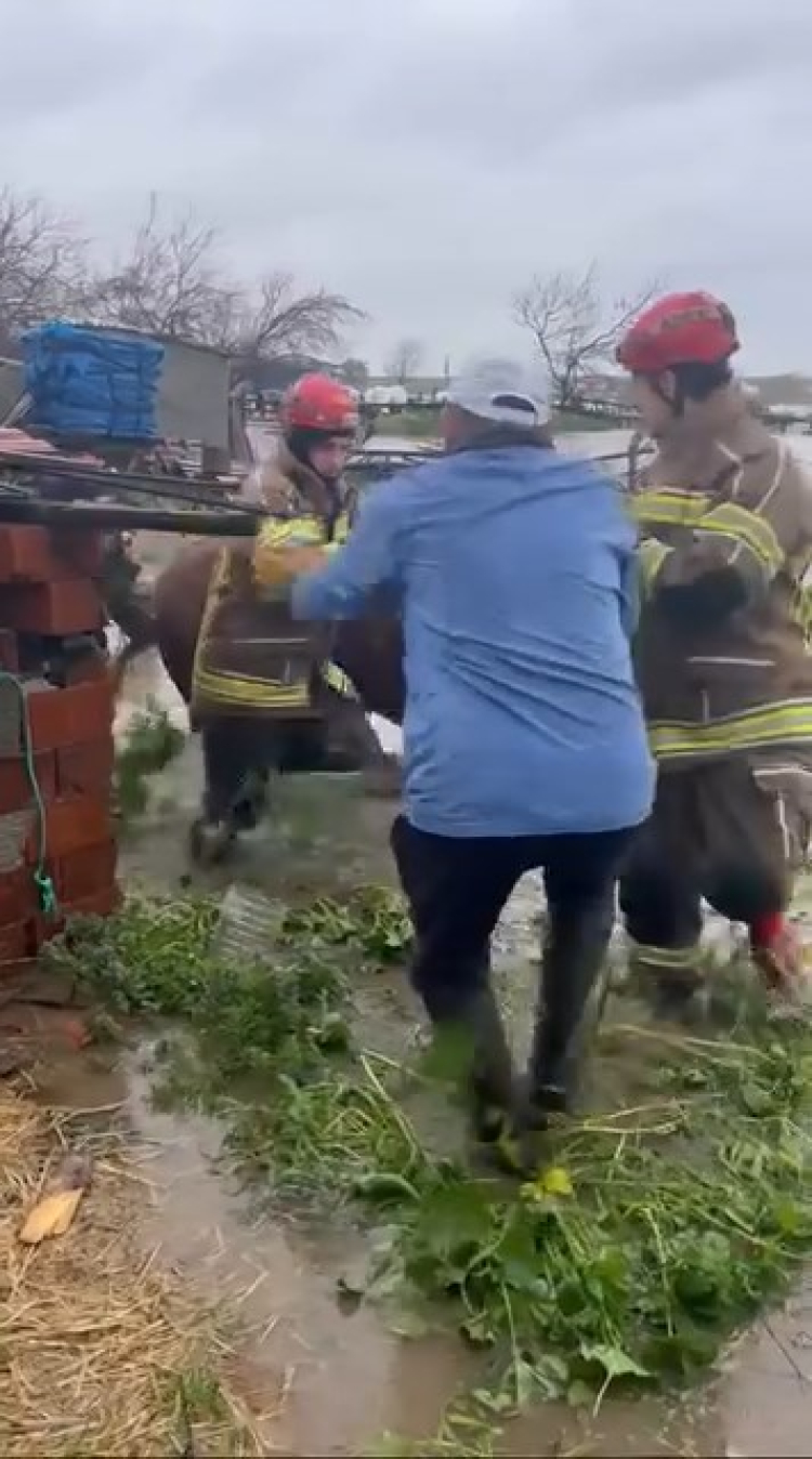 Bursa'da 3 gündür aralıksız devam eden sağanak yağış, toprak kaymaları ve su baskınlarına yol açtı. Karacabey ilçesinde tarlalar sular altında kaldı, ahırda mahsur kalan büyükbaş hayvanlar ise ekipler tarafından kurtarıldı.