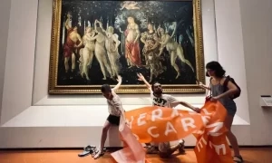 Eylemciler, Sandro Botticelli'nin "Primavera" tablosuna ellerini yapıştırdılar