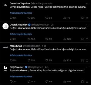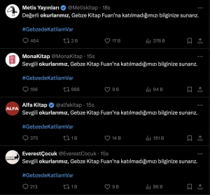 Bu katliam kamuoyunda büyük tepkilere yol açarken, birçok yayınevi Gebze Belediyesi'nin düzenlediği Gebze Kitap Fuarı'na katılmama kararı aldı. #GebzedeKatliamVar etiketiyle sosyal medyada boykot çağrısında bulunan yayınevleri, yaptıkları açıklamalarda bu olayı protesto ettiklerini ve fuara katılmayacaklarını duyurdu.