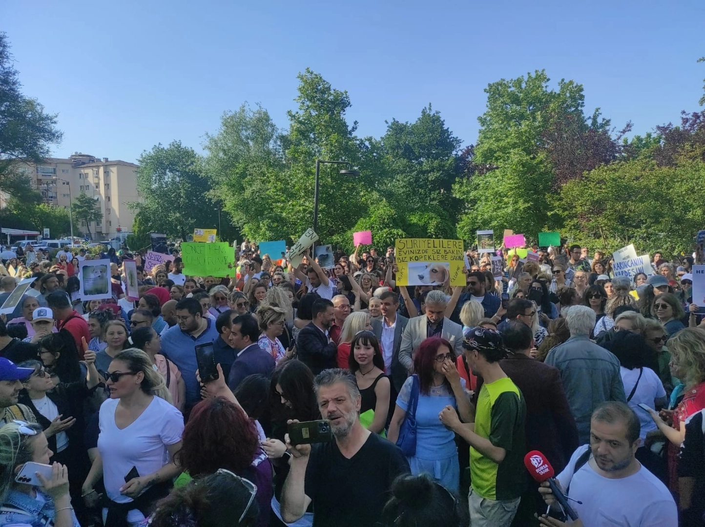 Eylemde, "Katliam yasası çıkarılamaz", "Hak hukuk adalet" ve "Hayvana işkence insanlık suçudur" sloganları atıldı.