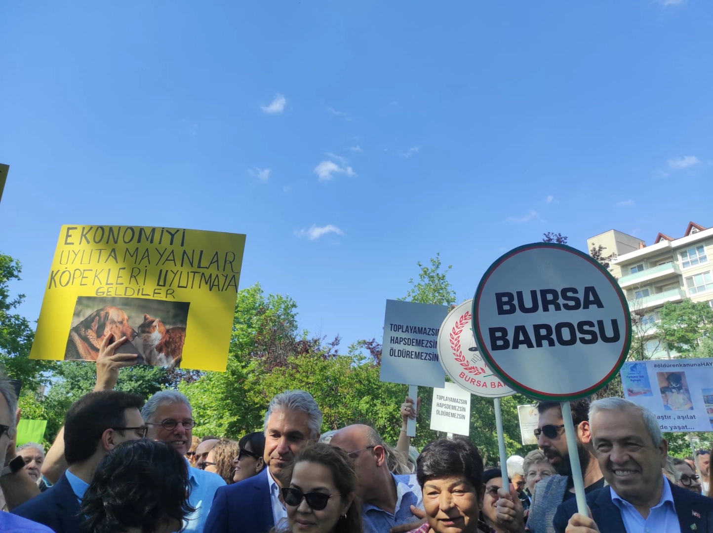Yüzlerce hayvansever ve hayvan hakları derneklerinin destek verdiği eylemde, CHP Bursa İl Başkanı Nihat Yeşiltaş, Bursa Büyükşehir Belediye Başkanı Mustafa Bozbey, Nilüfer Belediye Başkanı Şadi Özdemir ve Mudanya Belediye Başkanı Deniz Dalgıç da yer aldı.