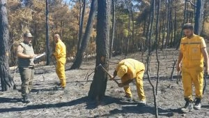 Bursa’nın Mudanya ilçesi Göynüklü Mahallesi'nde 2 Eylül 2023 tarihinde çıkan yangında küle dönen 25 hektarlık alanda tespit çalışmaları sürüyor. Yaklaşık 17 saatlik çalışma sonunda 6 uçak, 6 helikopter, 52 arasöz, 16 ilk müdahale aracı, 32 su tankeri, 20 iş makinesi ve 420 personelin müdahalesiyle söndürülen alevlerin verdiği zarar havadan ve karadan yapılan çalışmayla veri tabanı oluşturuluyor. Orman Bölge Müdürlüğü ekipleri, alandaki yanan ağaçların kesilip kesilmeyeceğine ve yerine dikilecek fidanların tespitini aralıksız sürdürüyor.