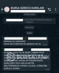 BursaTanık.com’a konuşan Bursa Sürücü Eğitmenleri Derneği Başkanı Ayşegül Yaşar Elmas ise bu rakamların gerçeği yansıtmadığını, sürücü kursu ücretlerinin İstanbul’da maksimum 7 bin 50 TL, Bursa’da ise 6-6 bin 600 TL arasında değişebileceğini söylemişti.