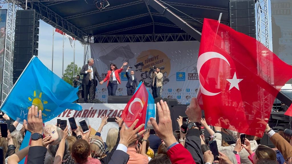 İYİ Parti Lideri Meral Akşener’in konuşmasından sonra ekonominin başına geleceğini, 30 yıldır AB’de yaşamasına rağmen vatandaşlık almamış bir Türk vatandaşı diye ifade ettiği Bilge Yılmaz’ı tanıttı.