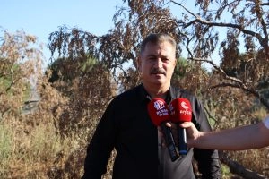 “Bursa’nın Karacabey ilçesi Gölecik köyündeyiz. Burada Karacabey Orman İşletme Müdürlüğü’nün zeytin bahçesini talan ettiğini görüyoruz. Aslında arazi orman arazisine ait. Daha önce Gölecik köyünde vatandaşlara 49 yıllığına vatandaşlara verilmiş ve denmiş ki ‘buraya badem ekin’. Badem verimsiz olunca insanlar burada ‘madem devlet bize böyle bir hak verdi’ diye zeytin ekmişler. Burada zeytin ve ceviz var. Ama ne hikmetse Karacabey Orman İşletme Müdürlüğü bu konuyla ilgili vicdanı sızlamadan bu zeytin ağaçlarını gelmiş kesmiş.