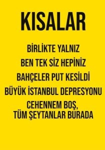 Birlikte Yalnız, Ben Tek Siz Hepiniz, Bahçeler Put Kesildi, Büyük İstanbul Depresyonu, Cehennem Boş Bütün Şeytanlar Burada.