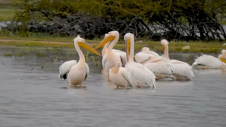 Göç yolundaki pelikanlar Bursa'da mola verdi